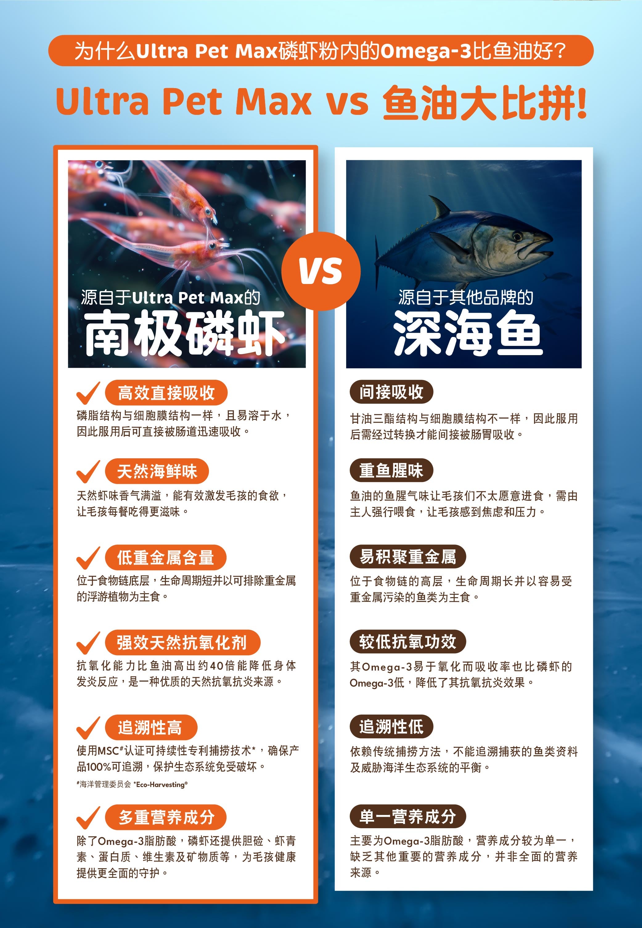 如果你想提升寵物的健康,Ultra Pet Max 極效皇牌磷蝦粉是個不錯的選擇。粉末與食物混合得很好,狗狗也沒有拒絕。